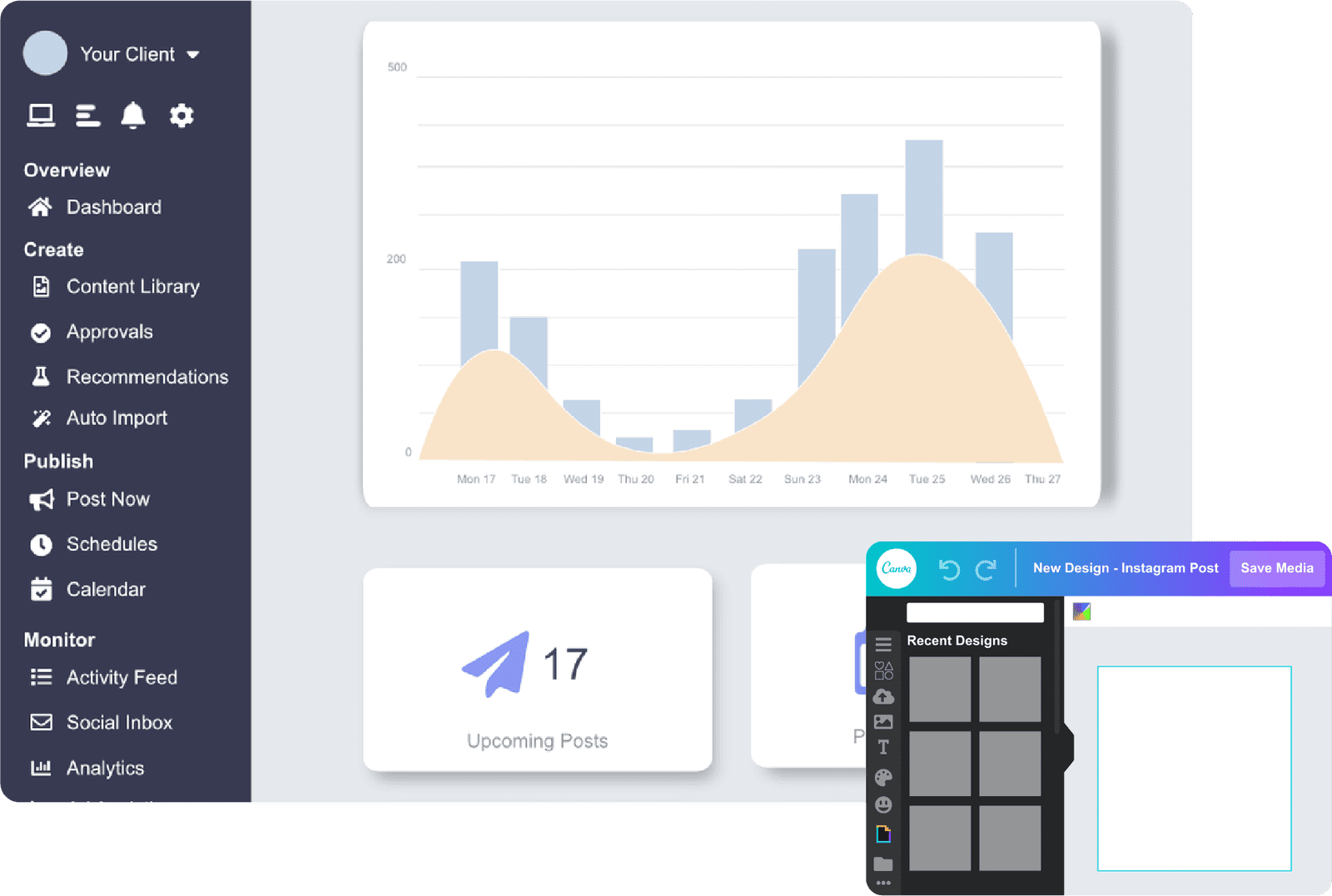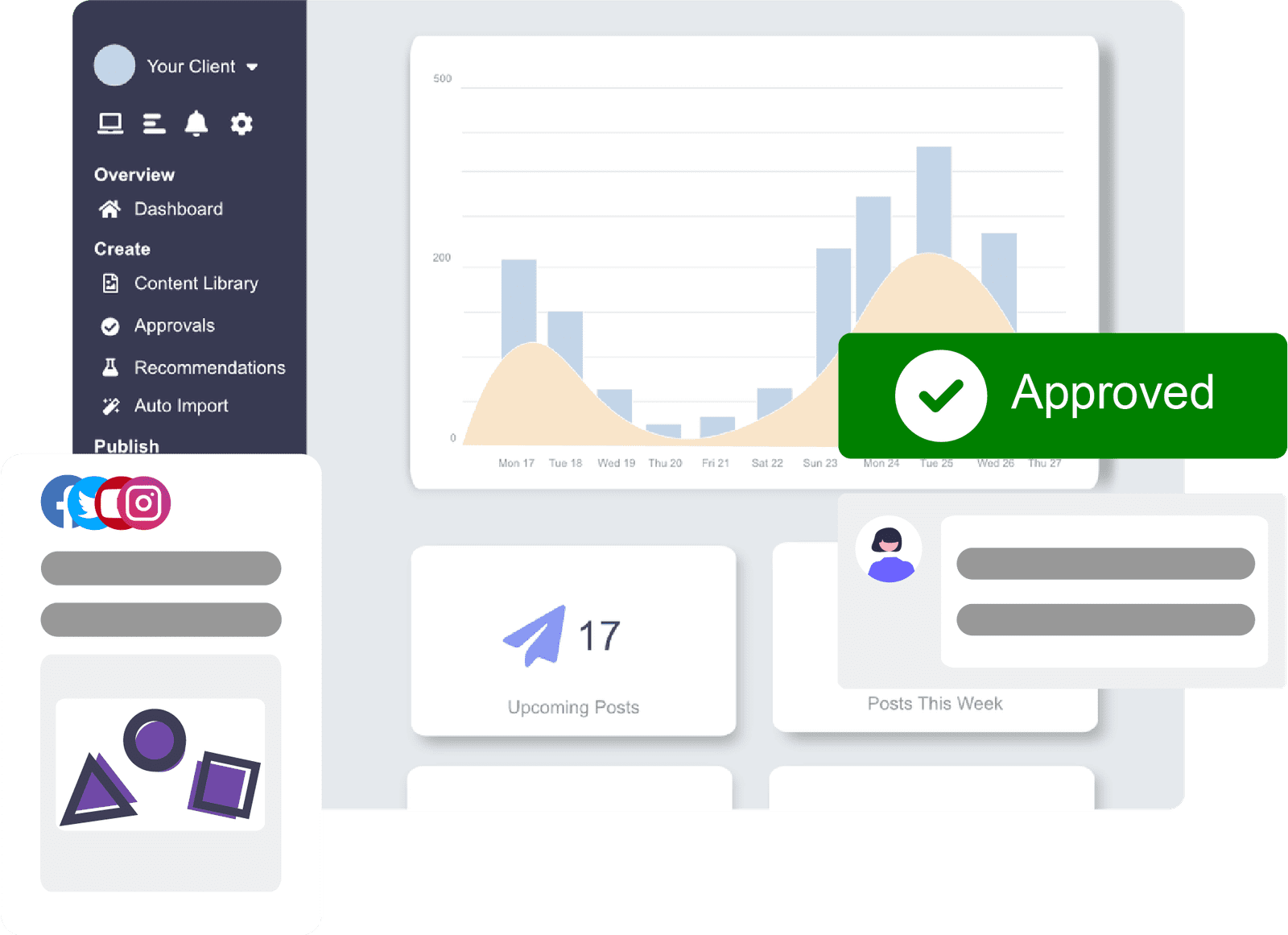 We create & publish your posts + free access to DripDash SMM Platform.